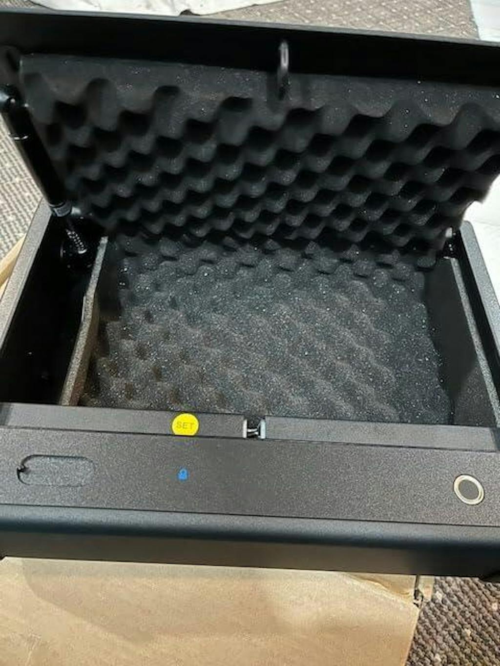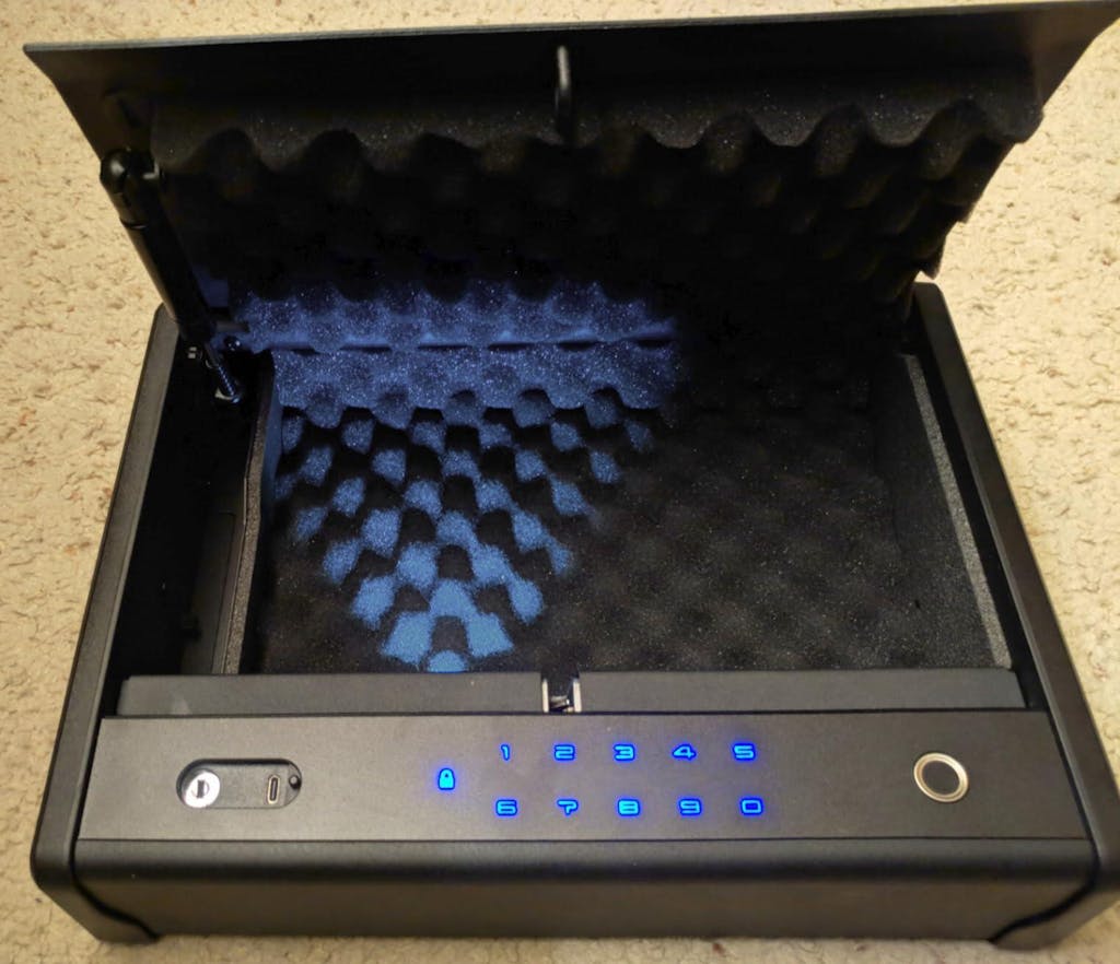 No fingerprint can open the compact pistol safe until it is set.