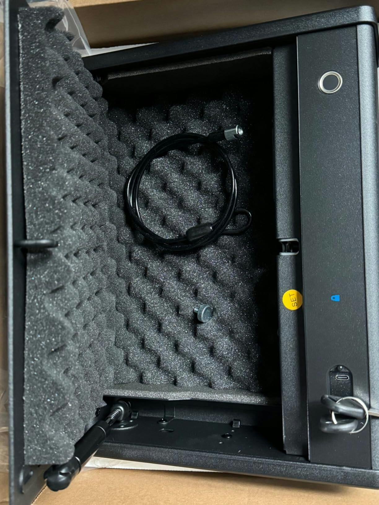 No fingerprint can open the compact pistol safe until it is set.